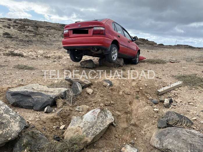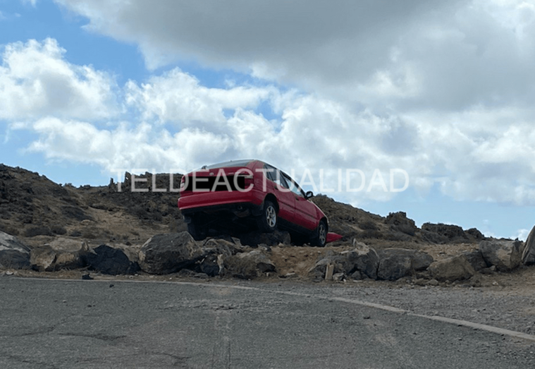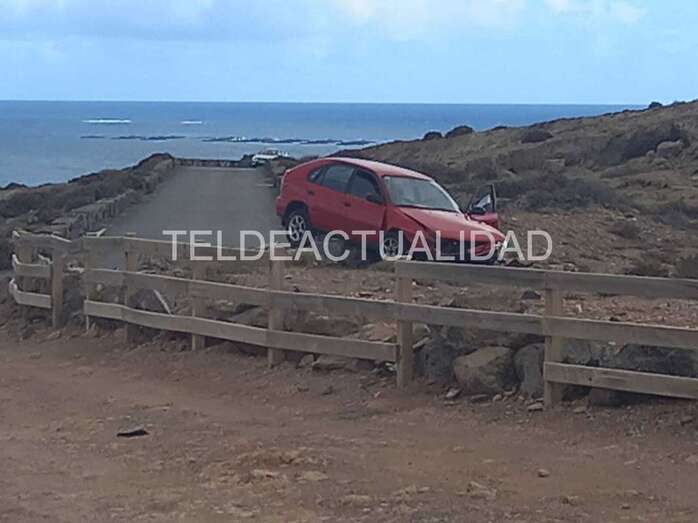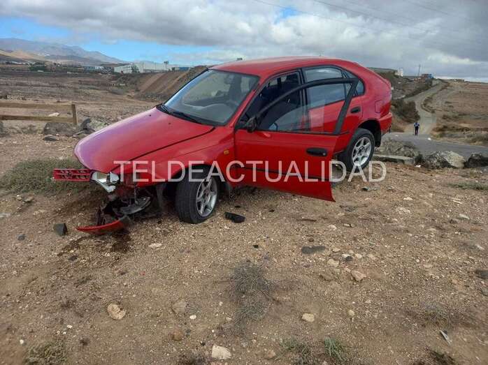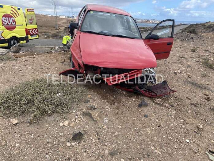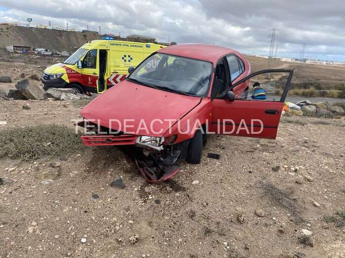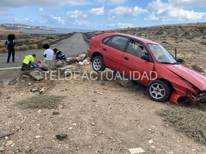 Accidente de tráfico en la carretera de Tufia. Un vehículo con cuatro jóvenes se salió de la vía y acabó en un terraplén. Una de las personas que viajaban a bordo sufrió lesiones y tuvo que ser evacuada en ambulancia a un centro médico de Telde.