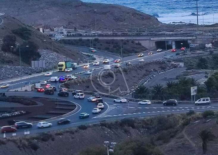 Un accidente de tráfico se produjo hace unos minutos en la rotonda de El Mirador, en la salida del Valle de Jinámar hacia la autovía GC-1.
