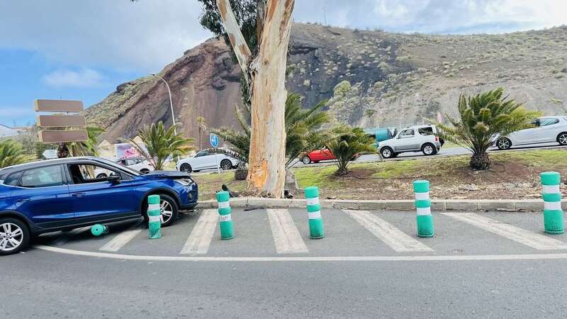 A media tarde hubo otro accidente, esta vez en la carretera general de Jinámar, la GC-100, en la entrada al pueblo desde Marzagán. Un vehículo chocó contra contra los bolardos de plástico colocados en la vía.
