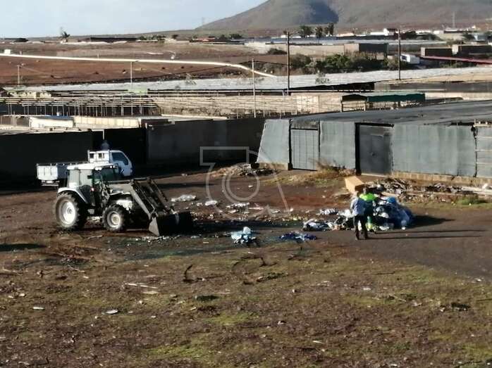 En el lugar también hicieron acto de presencia efectivos de la Policía Local y empleados de la empresa del servicio de recogida, que tuvieron que desbloquear la caja del camión donde se acumula la basura para sacarla del vehículo y evitar así que se quemara. Quedó tirada en el punto donde ocurrió el hecho hasta que esta mañana fue retirada por un tractor y un camión.