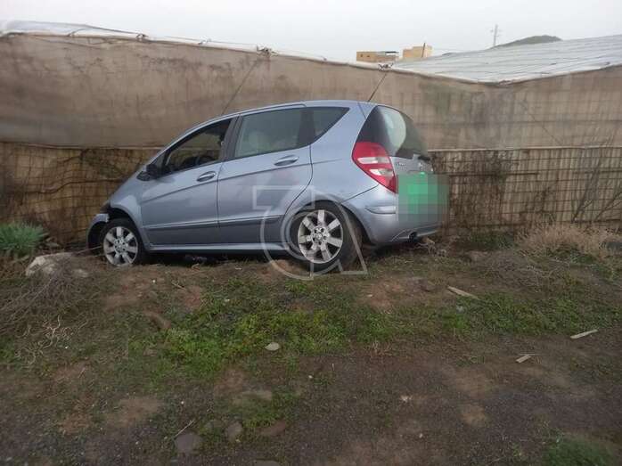 Un turismo se salió de la vía esta tarde cuando circulaba por la antigua carretera del sur (GC-100), en sentido hacia el casco urbano de Telde. El accidente ocurrió unos metros antes de llegar a la fábrica de tabacos de Cruz de Jerez.