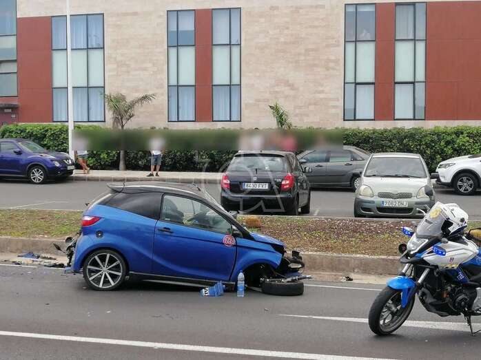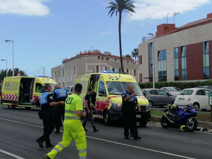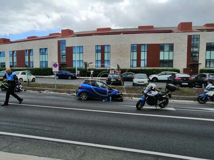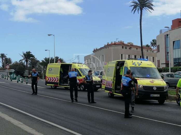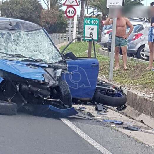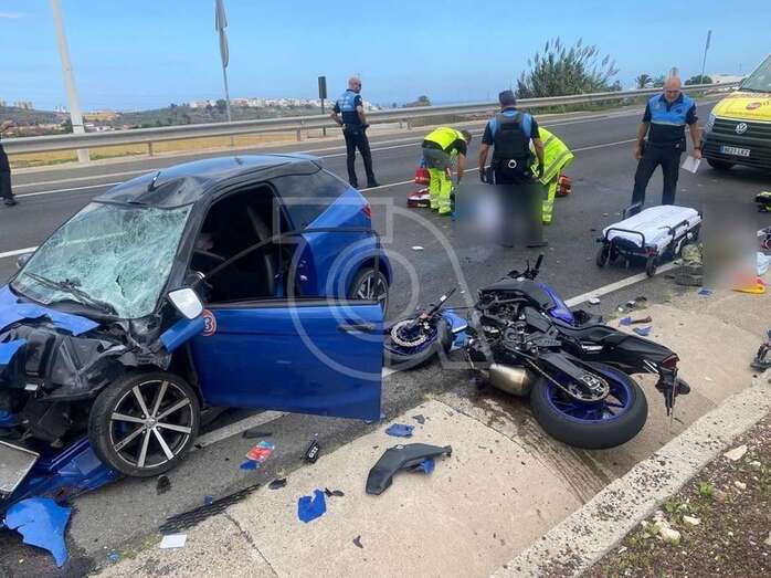 Un vehículo de licencia municipal colisionó frontalmente con un motorista en la vía de la circunvalación de Telde (GC-100) tras invadir el carril contrario cuando circulaba en dirección hacia la rotonda de El Cubillo.