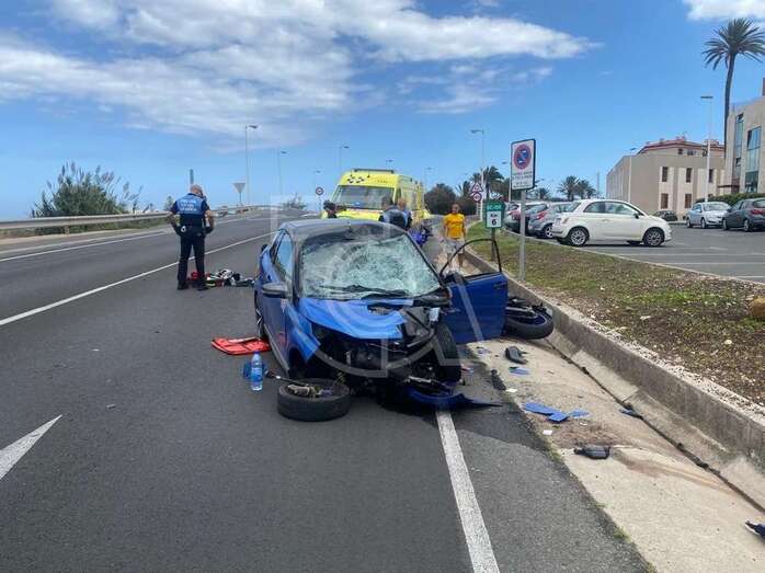 Fruto del fuerte impacto resultaron lesionados una mujer (motorista) con fractura en la muñeca de carácter moderado y un hombre (conductor del vehículo) con un traumatismo torácico, también de carácter moderado. Ambos fueron trasladados al Hospital Insular, según informó el Centro Coordinador de Emergencias y Seguridad 112 del Gobierno regional a este periódico digital