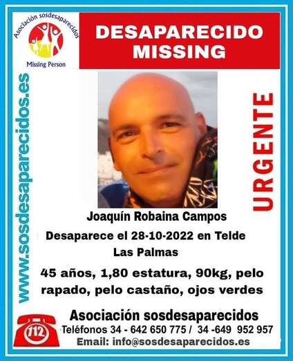 SOS Desaparecidos ha activado esta noche, hace tan solo unos minutos, la búsqueda del teldense Joaquín Robaina Campos del que no se tiene noticias desde el pasado viernes, 28 de octubre.