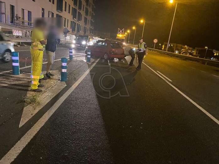 Una colisión frontolateral entre dos vehículos ha tenido lugar hace escasos minutos en la vía de circunvalación al casco urbano de Telde, la carretera GC-100, a la altura del puente sobre el acceso al barrio de El Caracol y del Contrapeso.