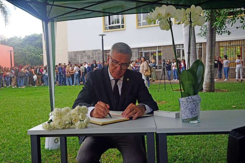Ha sido este lunes en un sencillo y sentido acto desarrollado en los jardines del centro, donde se ha guardado un minuto de silencio y el rector, Lluís Serra, y el decano de la Facultad, Germán Gallardo, han inaugurado un libro de condolencias, al tiempo que el primero ha anunciado que con este homenaje la ULPGC "da un paso atrás" siguiendo el deseo de la familia de los fallecidos, que ha pedido que se respete su espacio e intimidad para despedir a sus seres queridos.