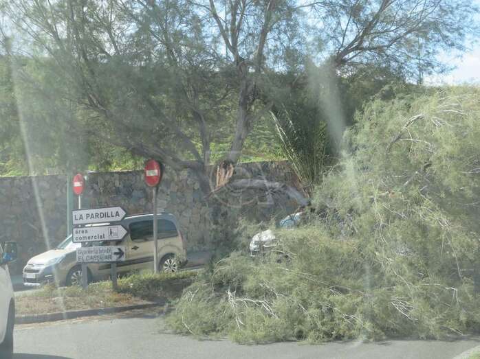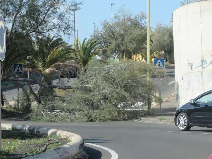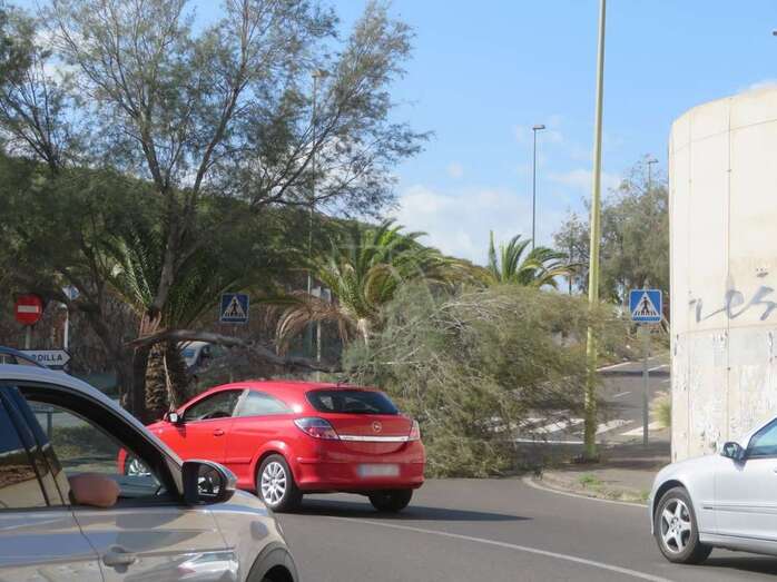 La caída de una rama de un árbol en las últimas horas está obstaculizando el acceso a La Pardilla y a la gran superficie de Makro desde la rotonda situada debajo de este establecimiento comercial que regula el tráfico que procede desde la GC-1, en sentido sur, y del vial costero.