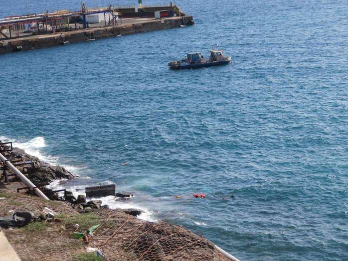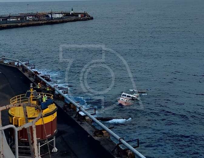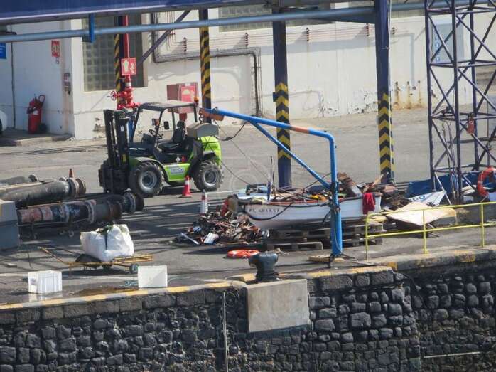 Tal y como adelantó este periódico digital, el pequeño barco usado por los buzos de una empresa especializada en trabajos submarinos estaba fondeado en la bahía de este muelle y por causas que se desconocen perdió el anclaje y se fue a la deriva golpeando contra unos riscos. El impacto abrió una vía de agua en su casco de madera y quedo semihundida.