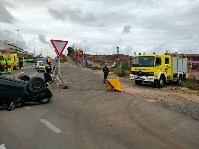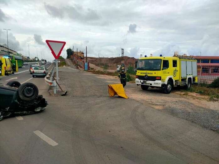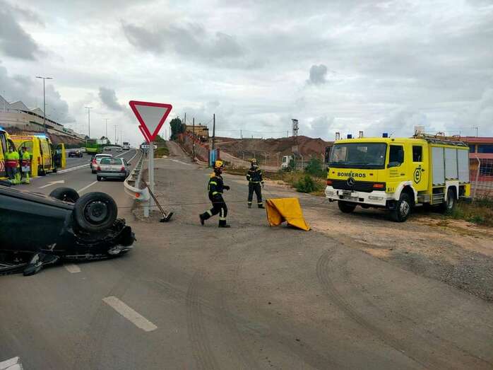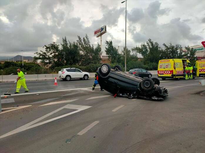 Vuelco de un vehículo en la GC-1, a la altura de Tufia (Telde)