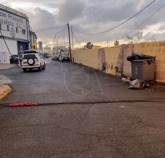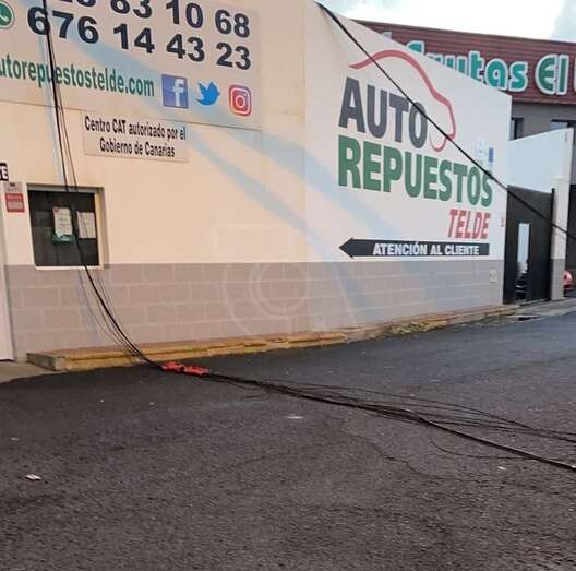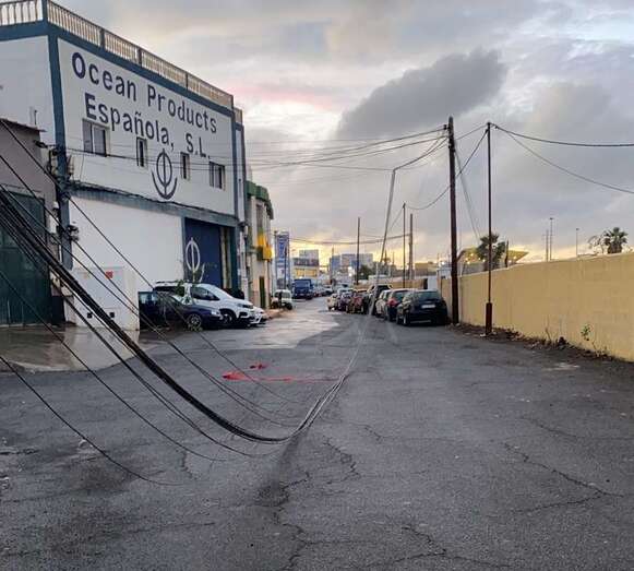 Caída de un tendido de cables sobre la calle principal de la zona industrial de Bocabarranco (Telde)