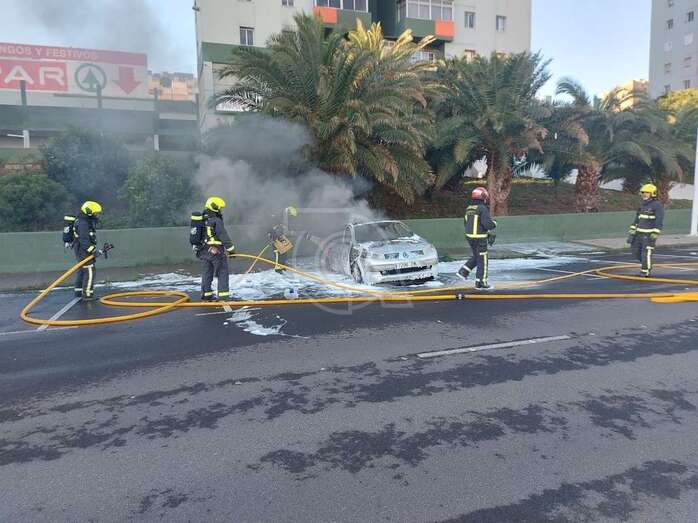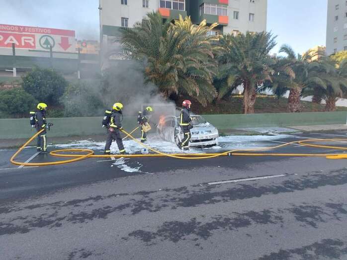 Dos dotaciones de bomberos del parque zonal de La Garita se desplazaron hasta el sitio donde estaba el vehículo en llamas y sofocaron el incendio, al que acudieron también efectivos de la Policía Nacional y de la Agrupación de Protección Civil de Telde.