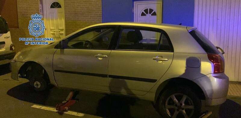 Los agentes sorprendieron in fraganti a tres jóvenes que portaban un gato y varios pasamontañas. Y, además, localizaron a un cuarto escondido debajo de un vehículo. Al inspeccionar el coche constataron que presentaba signos de forzamiento. Paralelamente, una patrulla de la Policía Local de Telde había recibido el mismo aviso pero referente a otra calle cercana, localizando allí otro vehículo al que le faltaba una rueda y a un joven manipulando el mismo.