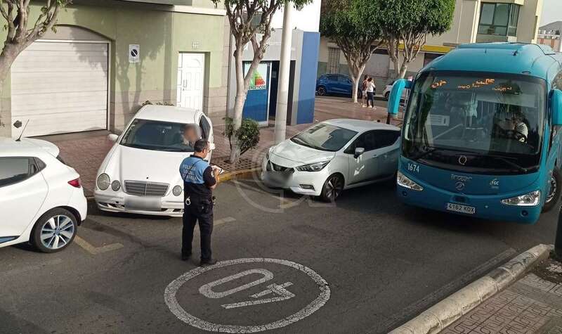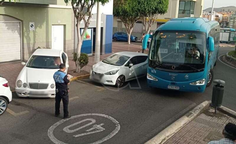 Un vehículo mal aparcado ha bloqueado esta tarde durante más de media hora el tránsito de una guagua de Global desde la rotonda de El Acueducto en dirección hacia la calle de Doctor Federico Betancor Oliva, en la zona alta de Los Llanos.