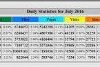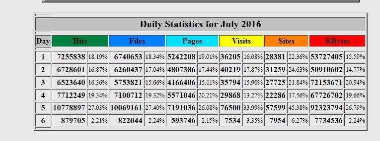 Estadística del servidor sobre peticiones recibidas durante el 5 de julio de 2016.