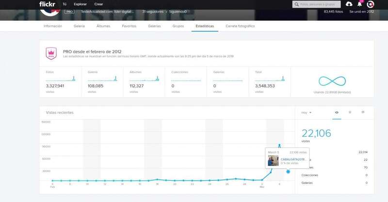A esto habría que sumar los datos obtenidos de Flickr, un servicio de almacenamiento de fotografías en el que hasta este lunes TELDEACTUALIDAD había registrado 115.780 visitas.