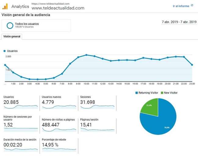 Telde.- TELDEACTUALIDAD anotó este fin semana un nuevo récord de páginas vistas con más de un millón de entradas visualizadas entre el sábado y domingo, según los datos auditados por Google Analytics y Flickr.