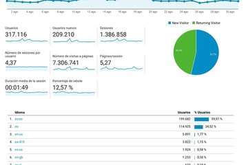 Los datos certificados por Google Analytics -el medidor más fiable de la estadística de webs- no ofrecen dudas. TA anotó durante septiembre y octubre casi 11,5 millones de páginas visualizadas, exactamente 11.442.610, lo que significa una media de 187.583 páginas vistas y con picos de más de 300.000. A ello hay que sumar un total 420.283 usuarios: 301.245 usuarios únicos y una media de 5,7 páginas vistas por cada visita o sesión.