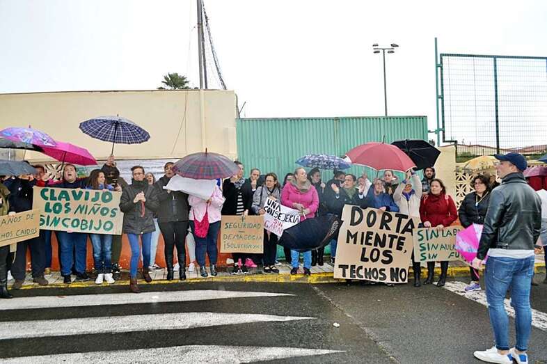 "Los techos están en muy malas condiciones y no se puede dar clases" ha comentado el alcalde de la Villa de Ingenio Juan Díaz Sánchez junto a un buen número de miembros del grupo de gobierno y concejales de la oposición que estuvieron presentes en la manifestación. "Es una demanda de los padres, madres y de toda la institución", de todos los partidos políticos en el ayuntamiento", añadía el primer edil, quién mostraba su total apoyo y respaldo a las familias. Hay un compromiso de la Consejería, pero tiene que haber diálogo y un acuerdo para resolverlo lo antes posible, ya que se trata de nuestros hijos", comentó, a la vez que informaba que..."Lo que quieren las familias es un compromiso por escrito porque están cansados de esperar a que esta situación se resuelva, hay un acuerdo de que hay unos 100.000 euros, que es insuficiente, se necesitan 240.000 euros por lo que se pide una modificación de crédito para ampliar la asignación y que se haga la obra en este verano, sin tener que aguardar al dinero del Gobierno de España ya que entonces habría que esperar a...2019".
