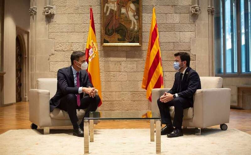La ‘diferencia’ de recibimiento entre ambos mandatarios ‘dista’ mucho a todos los niveles: mientras que en Moncloa ondean las banderas de España y Cataluña, en la Generalitat solo ondeaba la ‘señera’ catalana. En Moncloa el presidente Sánchez recibió en la escalinata a Aragonès y éste lo ha hecho dentro de palacio, en el interior.