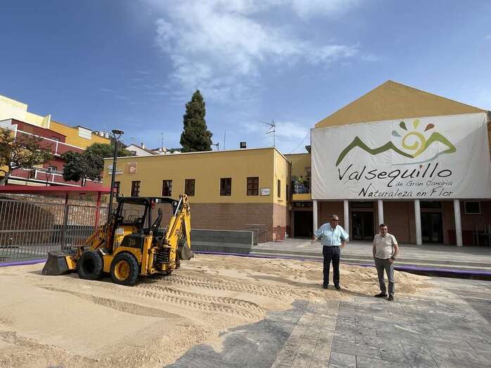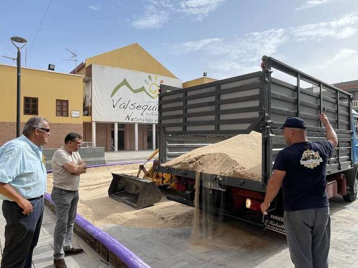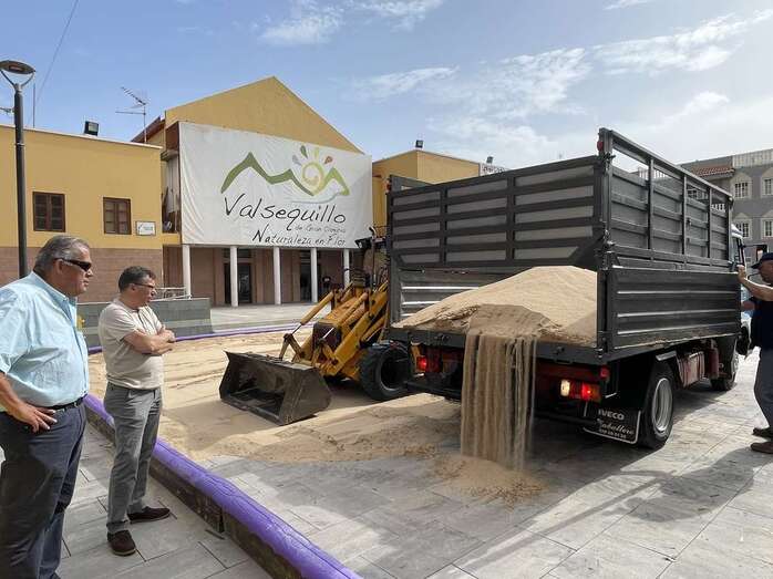 Alrededor de 48.000 kilos de arena son los que se han usado para crear un campo de 22x13 en la Plaza de Tifariti de Valsequillo. A pesar del calor, desde primera hora de la mañana, se ha estado trabajando para que, hasta el próximo sábado 30 de julio, los vecinos de la localidad puedan volver a disfrutar del Arena Plaza.