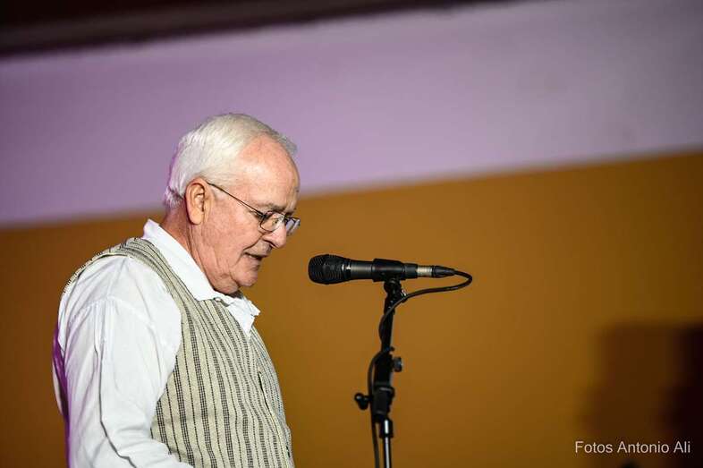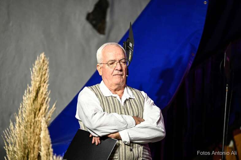 Desde una perspectiva didáctica, Peñate explicó y contó la historia del inicio de estos festejos y recordó a muchas personas que hicieron posible, en aquellos años, el inicio de esta ruta. Un recuerdo emotivo en el que nombró a David Peñate, Constanza Martín, Armando Peñate, Fernando Toscano y a Damián Corujo, quién fue el que propuesto llamar de “la teta a la escudilla” la ordeñada con la que desde entonces y hasta hoy termina el evento en la localidad. A este último, el cual falleció como ha dicho “aquí en el escenario, delante de su pueblo al que tanto quería”, dedico unos versos.