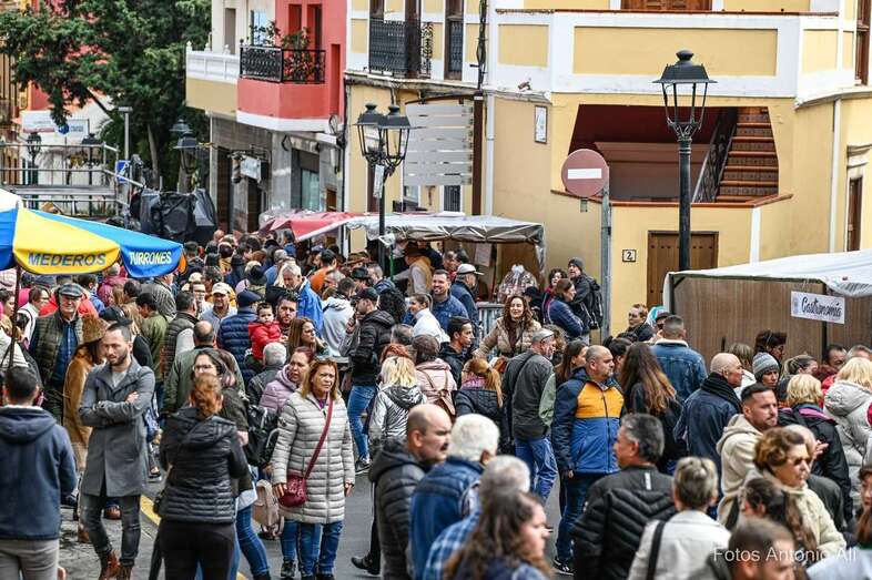 Y es que pasear hoy por Valsequillo era oler y saborear en cada rincón los mejores platos de la gastronomía canaria; potaje, carne de cochino frita, garbanzada, papas arrugadas, chicharrones, carajacas, beletén, tortillas de carnaval y otros productos típicos de la zona como el queso, el vino, las fresas, la miel o papas porque los productores de papas de Valsequillo ha puesto un stand donde han vendido cajas y mallas de papas recién cogidas. Obviamente, no han faltado las almendras y es que, este año, se han estado regalando tostadas, y garrapiñadas en un puesto habilitado por la institución local. Unos ventorrillos en los que se han vendido todas las existencias y es que muchos han tenido que colgar el cartel de todo vendido.