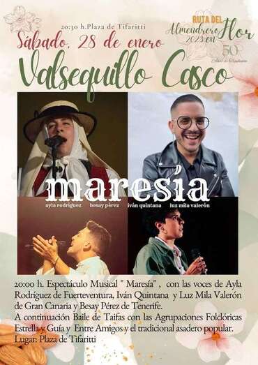 La plaza de Tifariti de Valsequillo acogió el pasado sábado, 28 de enero, el espectáculo musical Maresía enmarcado en las fiestas de Ruta del Almendrero en Flor 2023.