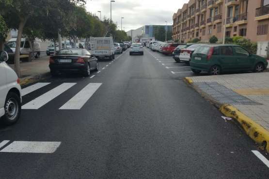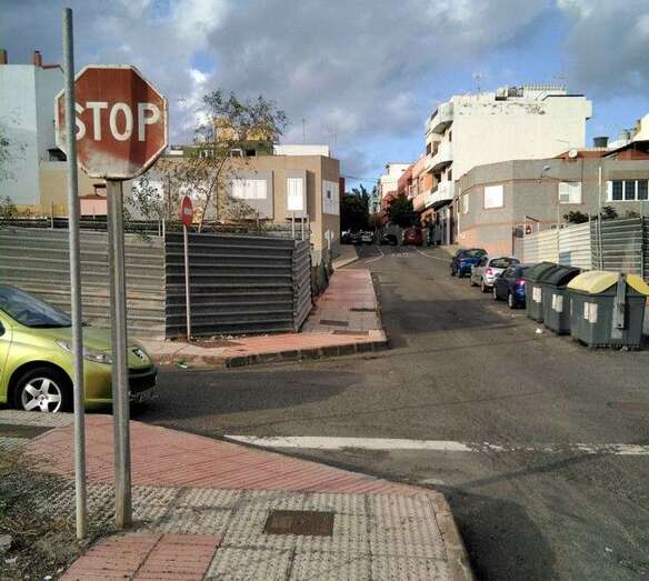El stop del cruce de las vías Adargoma y Guayedra apenas se ve porque no queda rastro de la pintura y los conductores se lo saltan.