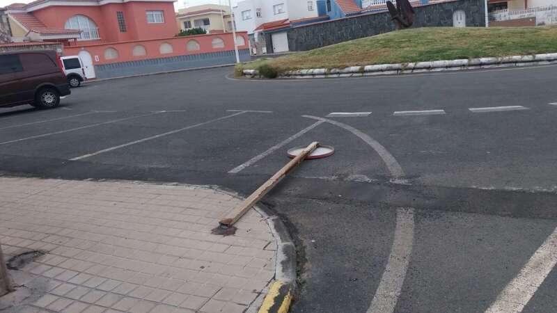 No es la única señal de tráfico que se ha caído en los últimos días. Esta está cerca de la rotonda del Ancla (Los Melones).
