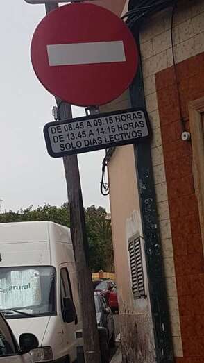En la vía de acceso al Colegio José Tejera hay una señal con prohibiciones horarias que nadie respeta, según los vecinos.