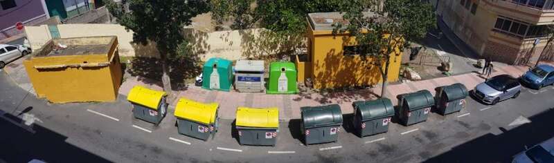Servicios refuerza los contenedores en esta vía de Los Llanos con críticas de algunos vecinos por el elevado número de depósitos.