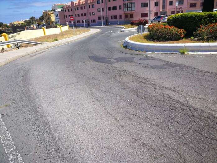 La vía presenta asfalto en mal estado, las aceras necesitan mejoras y el muro con el barranco está en peligro de derrumbe.