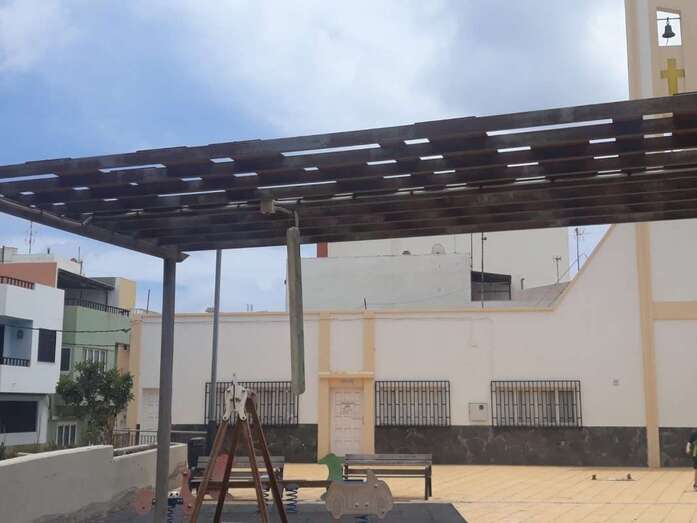 La luminaria de una de las marquesinas de la plaza del núcleo costero cuelga del techo y está a punto de caerse.
