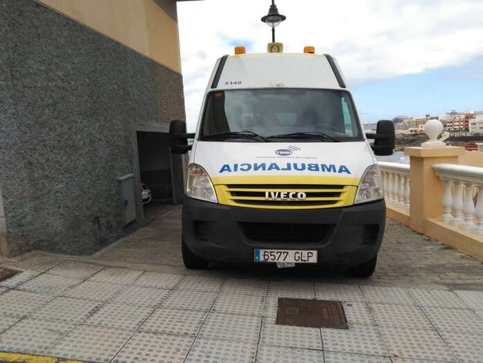 Una ambulancia de transporte sanitario suele aparcar, según vecinos del lugar, en la misma avenida peatonal de Taliarte.