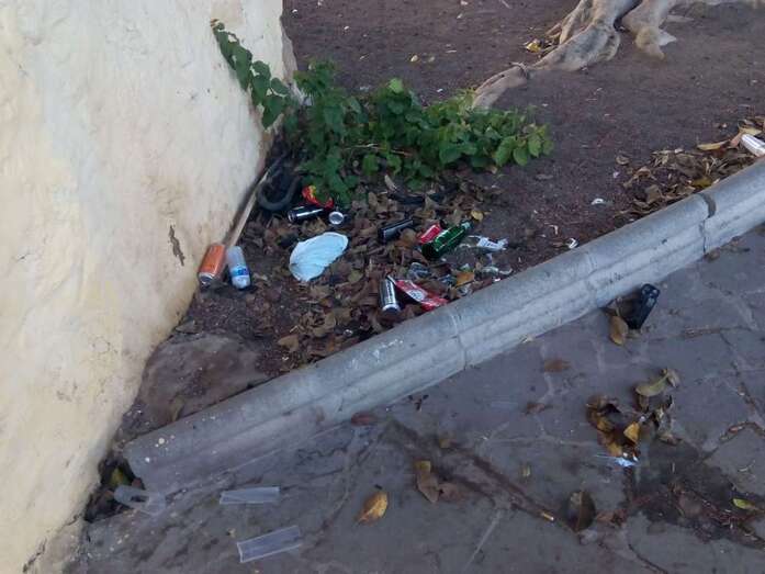 Jóvenes que practican skate en las pistas del parque urbano de San Juan tiran envases de bebidas a los parterres.