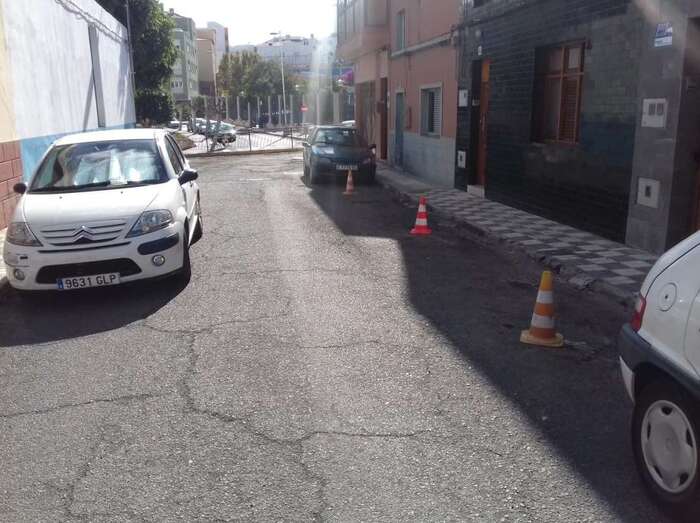 Dificulta el paso de coches en esta vía de La Barranquera. Según vecinos del lugar, no se retira porque no hay servicio de grúa.