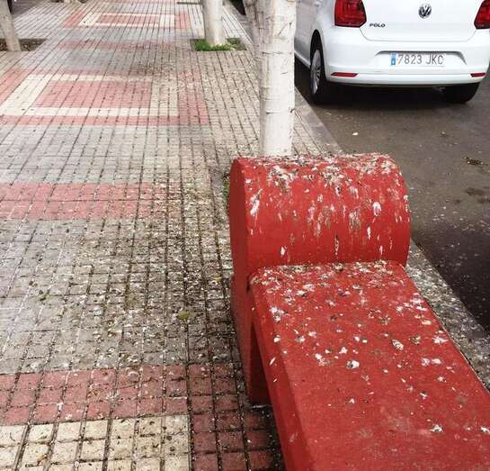 La limpieza de la rambla de Américo Vespucio, en Salinetas, brilla por su ausencia. Los excrementos de las aves copan los bancos.