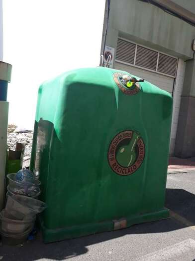 Así lleva mucho tiempo este contenedor situado en Casas Nuevas, en la calle de Galileo Galilei esquina con la La Palma.
