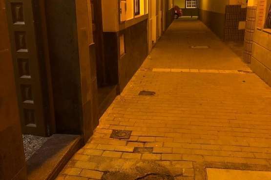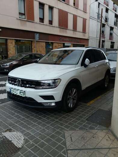 Coche aparcado sobre la acera y obstaculizando el tránsito hacia un paso de peatones en la calle de Los Gofiones.