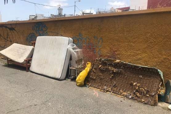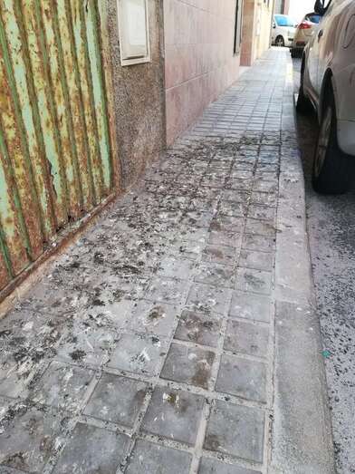 Los excrementos de palomas son un foco de infección en la calle de Gravina. Los vecinos piden la limpieza de la acera.