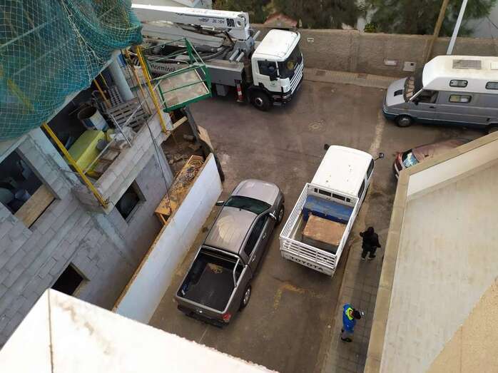 Vecinos de la calle de Cádiz se quejan de los ruidos que causan las obras de construcción de un edificio.