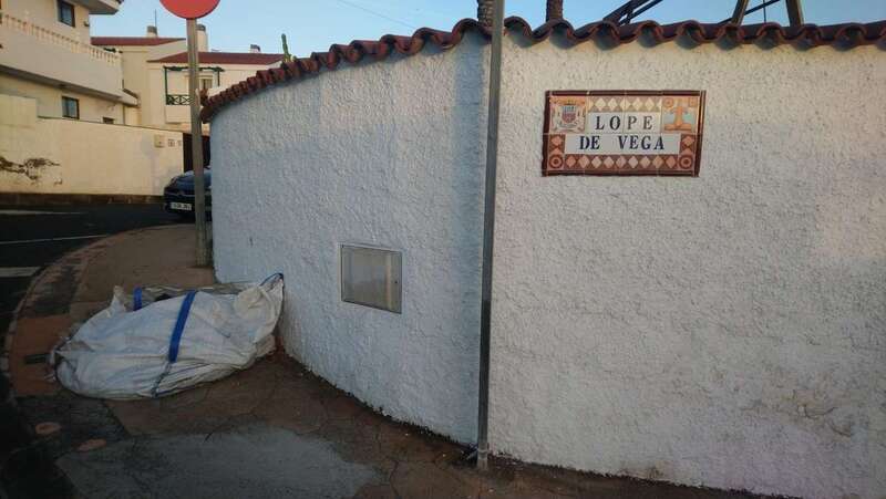 Una semana lleva un gran bolsa de escombros en una esquina de la calle de Lope de Vega, a la vista de todo el mundo.