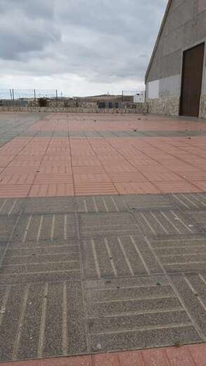 En la plaza junto a la iglesia hay desperdigados trozos de vidrio que son un peligro para niños y adultos