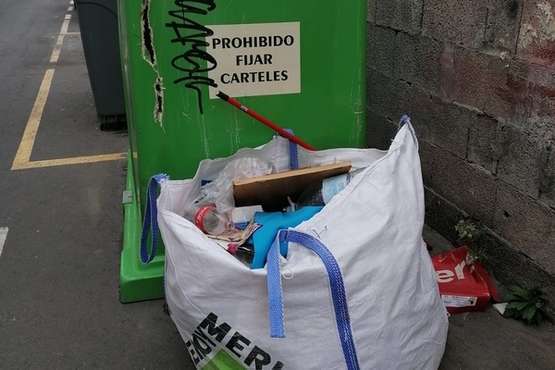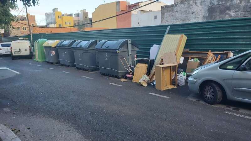 Vecinos denuncian el depósito de enseres y trastos fuera del horario de recogida en la calle próxima al colegio.