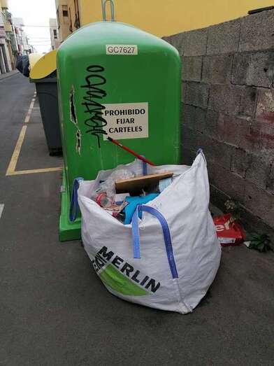 Quejas de vecinos de la calle Fray Luis de León por una bolsa de basura que lleva más de una semana junto a unos contenedores.