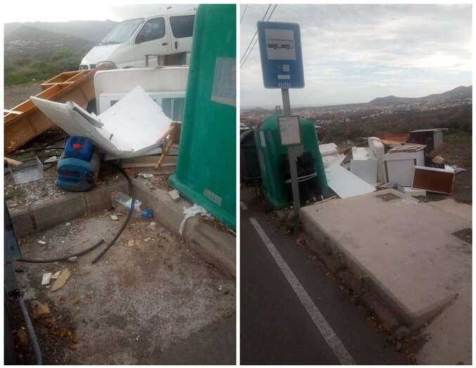 El punto de recogida de basura que está en la calle de Bentaguayre, junto a la parada de guaguas, es un estercolero.