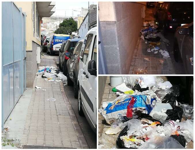 Basura tirada sobre la acera en la calle de Barcelona, en el casco de Jinámar. Esta es la queja de un vecino de la zona que emplaza al Ayuntamiento a poner los contenedores de los comercios de alimentación más lejos o bajo tierra, “si no los incívicos, por no llamarlos de otra manera, seguirán haciendo estas cochinadas”.