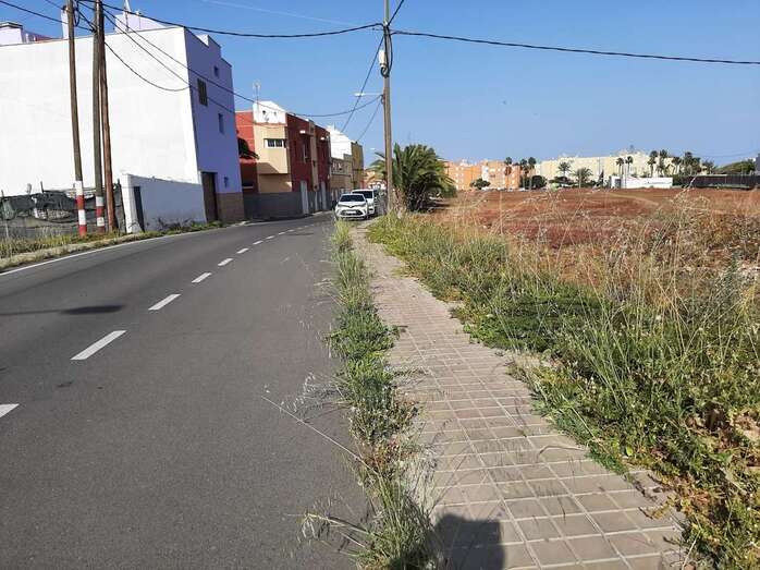 En la calle de Tabaibal, entre Las Remudas y San Antonio, la maleza obliga los peatones a caminar por la carretera.