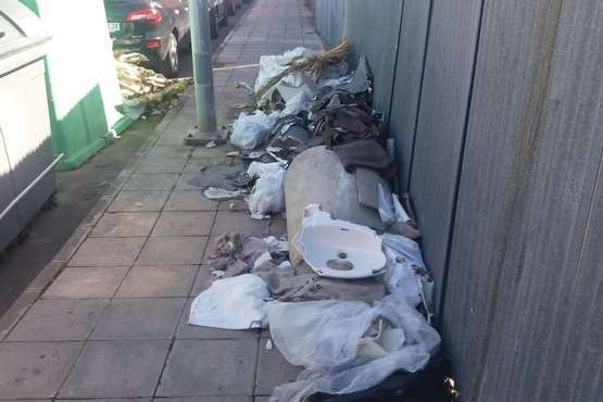 Visto en Clavellinas. Gente incívica que no sabe cómo llegar a los cubos de basura que están puesto al final de esa misma calle. A ver si ponemos todos un poco de nuestra parte. Es que hay cosas increíbles la verdad (Vecina de la zona).