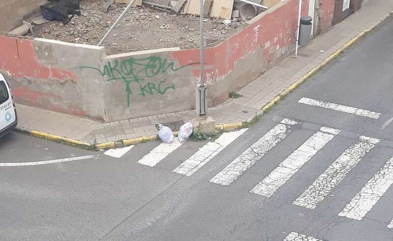 Así son los vecinos de Las Huesas. Cuando nos dejaron salir después del confinamiento todos se echaron a la calle a caminar, cosa que no hacían antes del confinamiento, y ahora resulta que al cambiar los contenedores de lugar no son capaces de caminar 100 metros más. Así amanece esta esquina de la calle Numancia (Yurena Pérez).